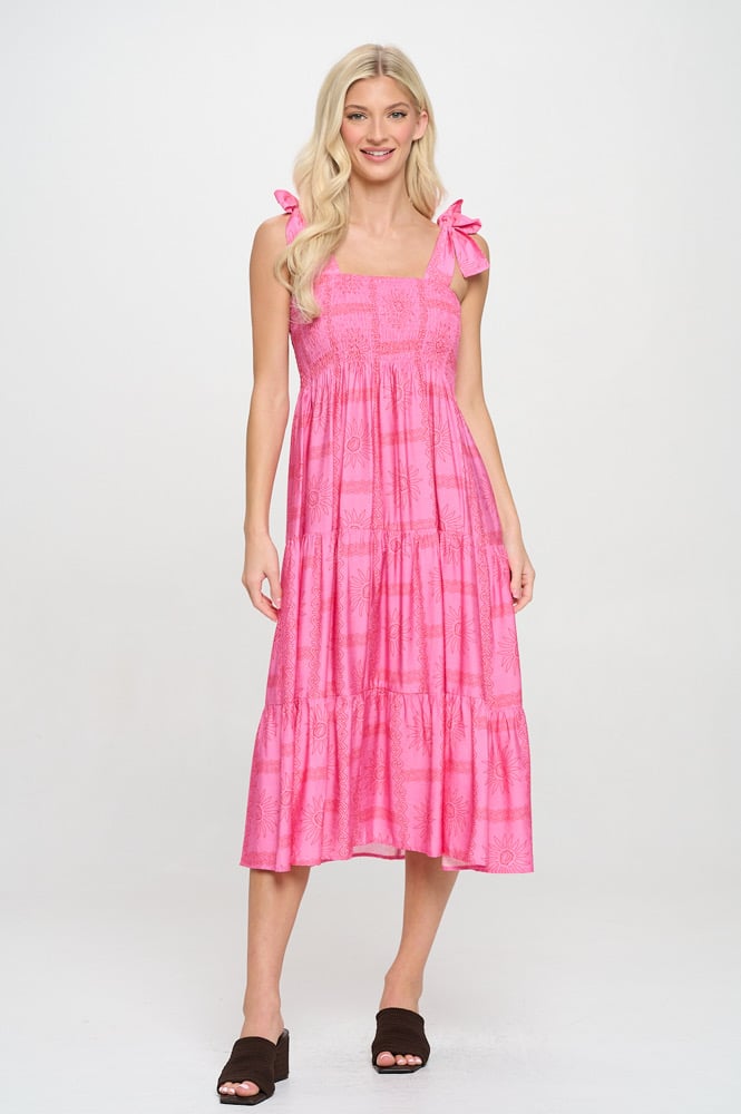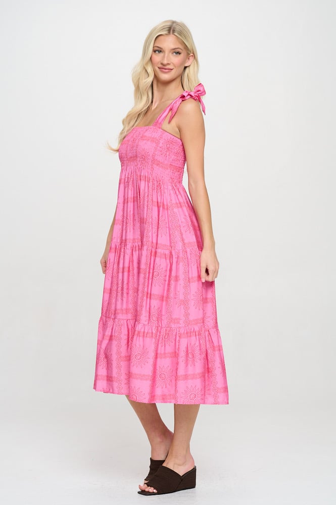 the perfect maxi dress for your next vacation or beach day. unique pattern with ties. ribbed chest for that stretch!