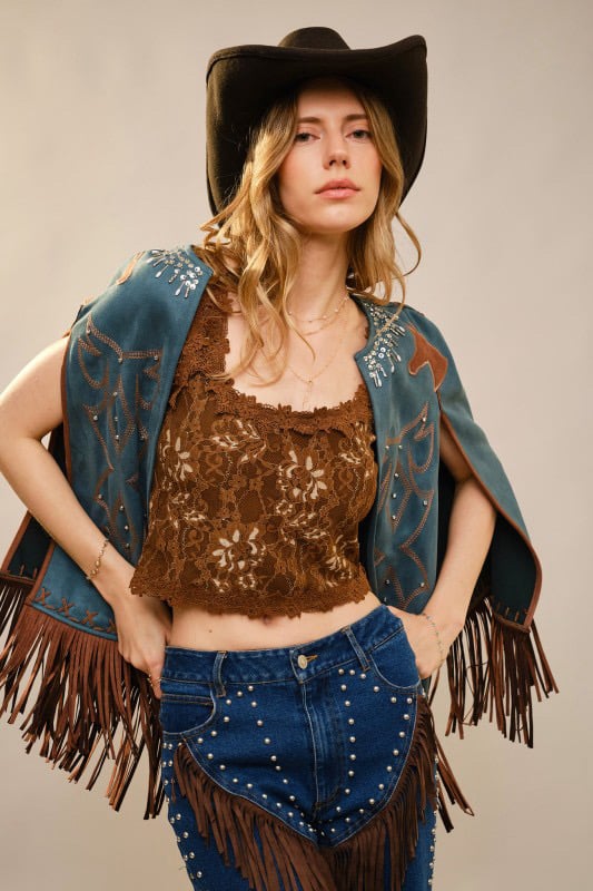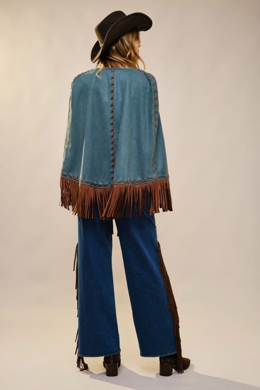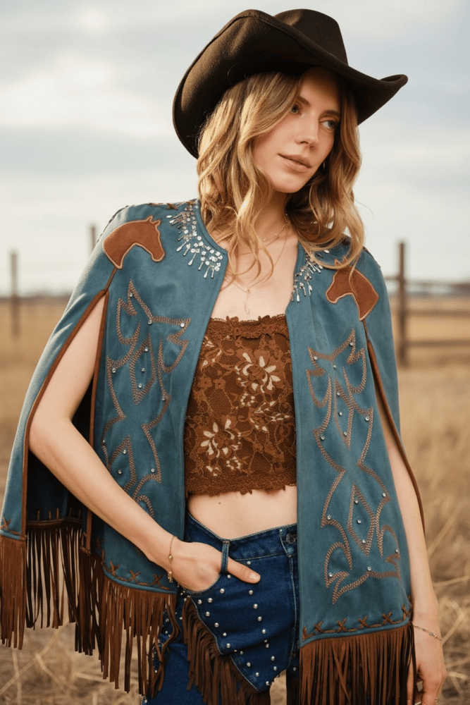 Western Embellished Fringe Cape